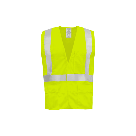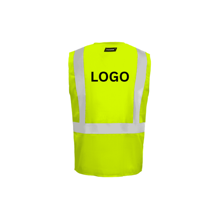 This high-visibility safety vest is made from 100% polyester mesh fabric, providing lightweight breathability and durability for a comfortable fit. Designed to meet ANSI/ISEA 107-2015 Class 2 standards, it features 2-inch silver reflective tape extending over the shoulders and around the torso for enhanced visibility. The hook & loop front closure ensures easy wearability, while five pockets—one upper left chest pocket, two exterior waist pockets with flaps, and two interior waist pockets—offer practical storage for essential tools and accessories. This vest is ideal for high-risk work environments where visibility and convenience are key priorities.