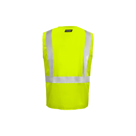 This high-visibility safety vest is made from polyester mesh fabric for a uniform look. It features 2” silver reflective tape to enhance visibility in low-light conditions. Designed for comfort and flexibility, it has an adjustable hook & loop closure on the front and sides. This Class 2 vest is ANSI/ISEA 107-2015 compliant, ensuring reliable safety and compliance with industry standards.