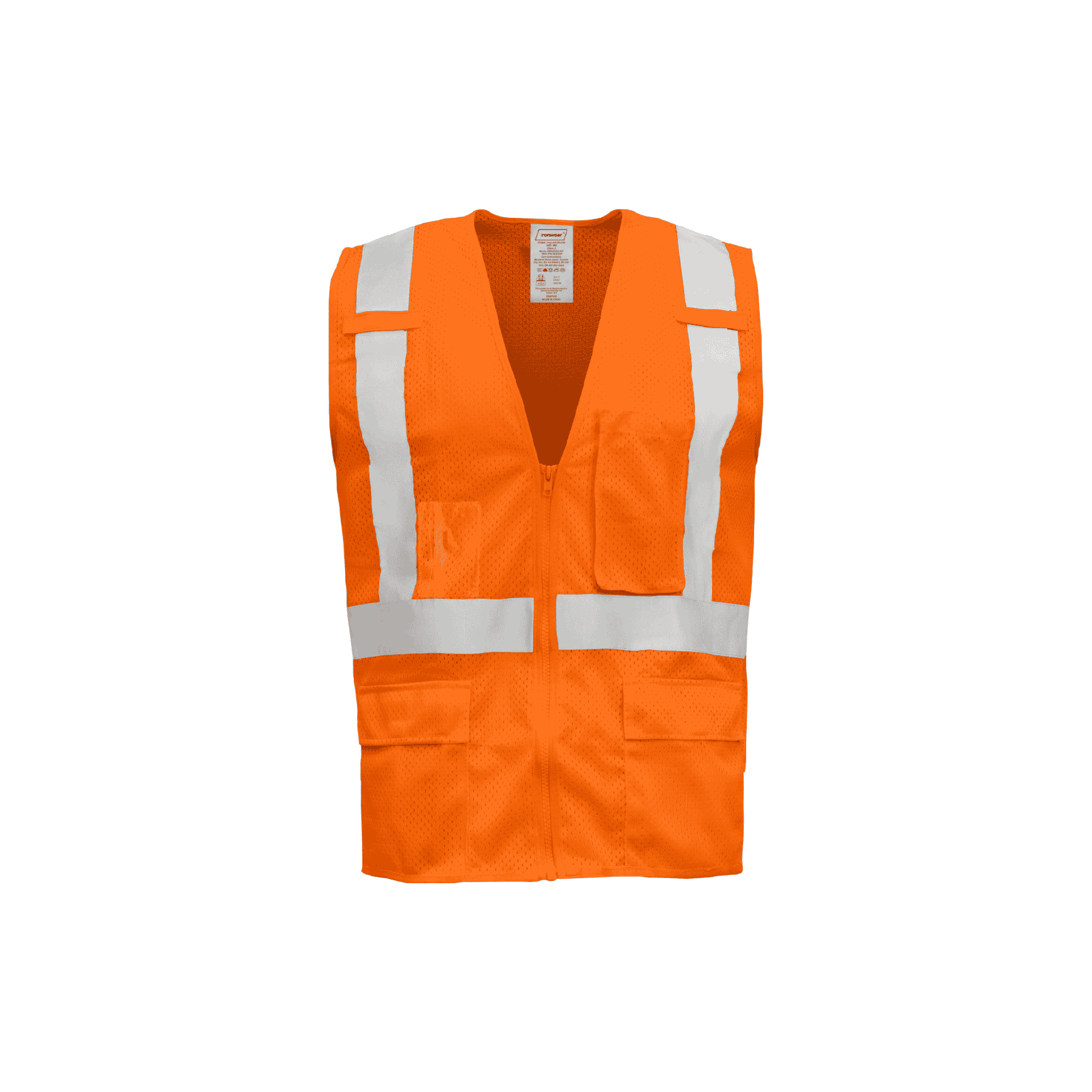 Ironwear Class 2 Safety Vest with Zipper Closure and 5 Pockets (Orange)