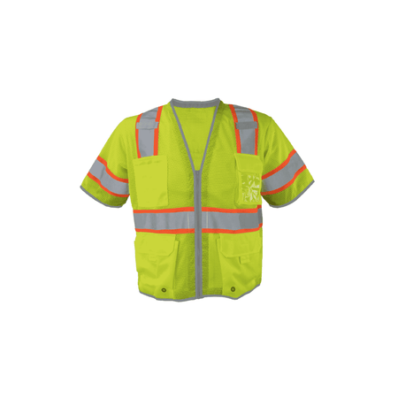 Class 3 Lime Polyester Mesh Zipper Closure Safety Vest (6 Pockets)