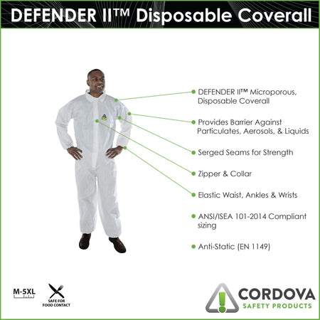 Choose DEFENDER II™ for a microporous coverall that redefines protection and comfort in challenging work environments. Cordova Safety Products sets a new standard with DEFENDER II™, the lighter, cooler, and more advanced evolution in protective clothing.