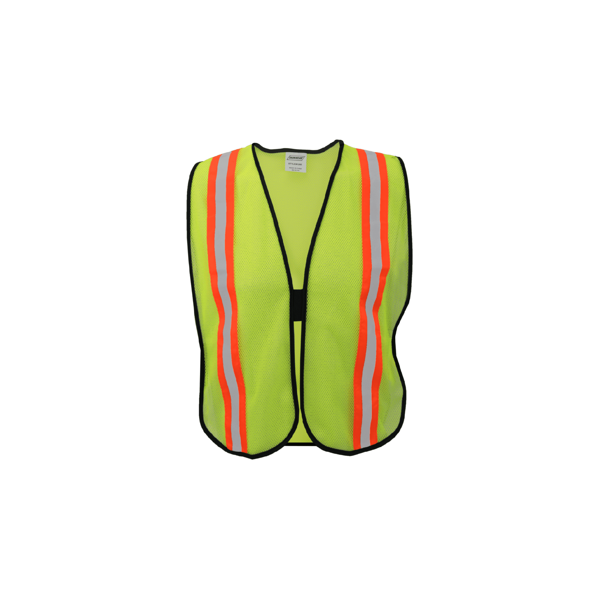 This high-visibility safety vest is designed for basic protection and visibility in various work environments. Constructed from 100% polyester mesh fabric in lime, it ensures lightweight comfort and breathability. The black polyester binding adds durability, while the 1/2-inch silver reflective tape on 2-inch orange fabric enhances visibility, making it easier to be seen in low-light conditions.