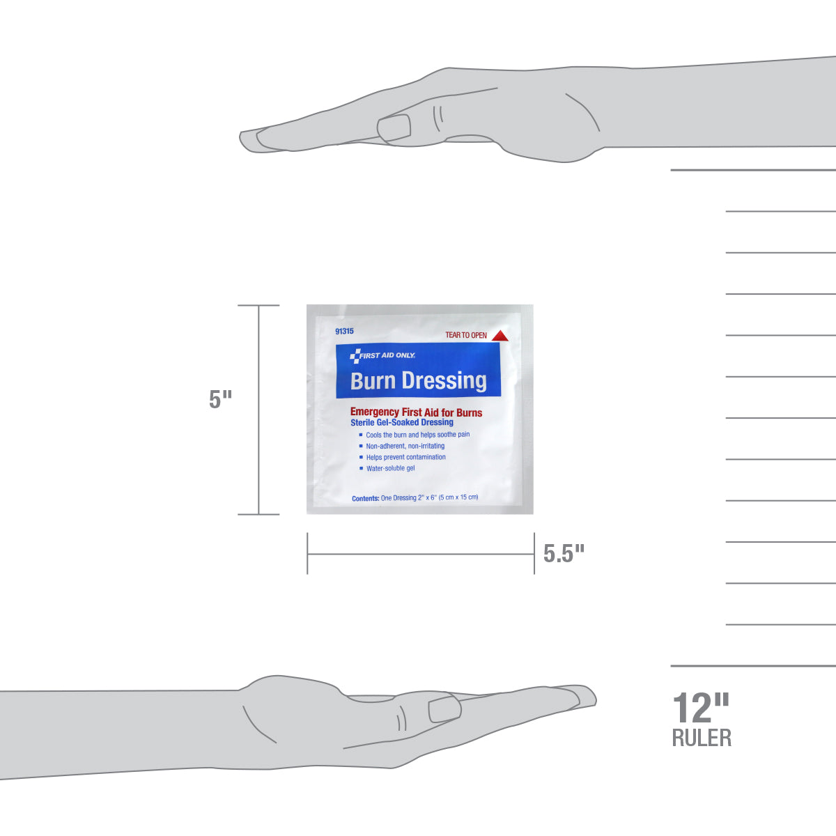 This gel-soaked dressing provides immediate treatment and pain relief for most burns of all degrees. The sterile pad is infused with a water-based gel that provides instant cooling and prevents further tissue damage. It is conveniently sized so that it will wrap around the wrist or wrap between the fingers in order to keep them separated. It can also be used for the inner arm, foot instep, or other areas where this size dressing would be suited.