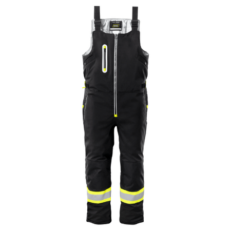 For added visibility and safety, the overalls feature two-tone, 2" reflective tape over 4" contrasting fabric. The garment also offers plenty of storage, with 5 pockets, including a zippered chest wallet pocket, upper hand warmer pockets with snap closures, and multiple waist and back pockets with zippers. Hook and loop leg openings and retractable pull tabs behind the waist allow for an adjustable, snug fit.