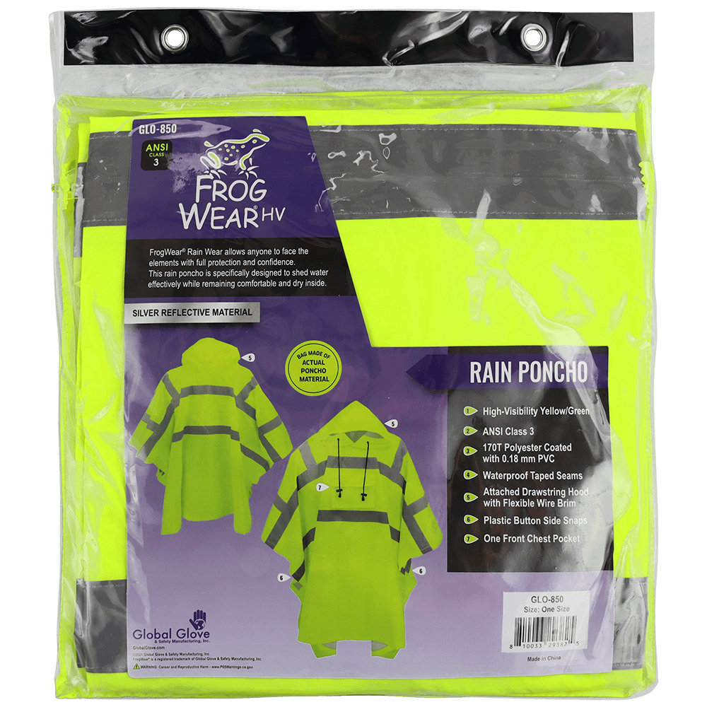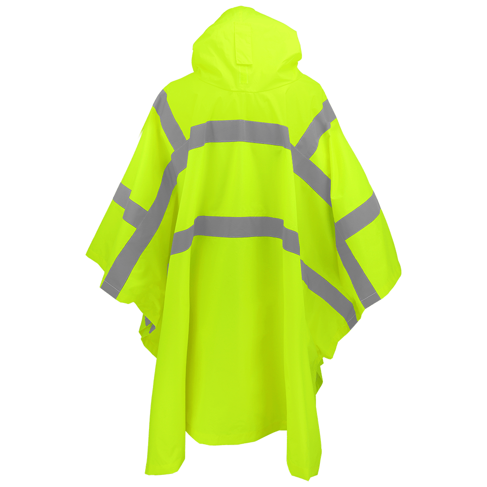 ANSI Class 3 Hi Vis Rain Poncho with Reflective Striping