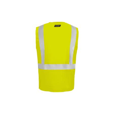 Enhance your on-site safety with our ANSI/ISEA 107 compliant safety vest, expertly designed in a vibrant hi-vis lime color. Made from 100% polyester mesh fabric, this vest features high-visibility reflective tape that spans over the shoulders and around the torso, providing superior all-around visibility. Durable hi-vis lime polyester binding and a secure zipper front closure ensure a reliable fit and longevity in demanding work environments. Accentuated with 2” silver reflective tape and equipped with five well-positioned pockets—including one upper left chest pocket, two exterior waist pockets, and two interior waist pockets—this vest offers both practical storage and unmatched safety performance.