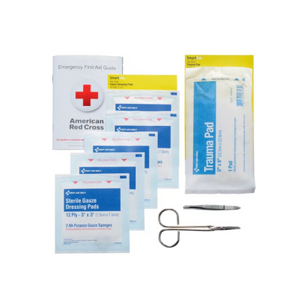 - Includes bandages, antiseptics, gloves, scissors, gauze, and more
