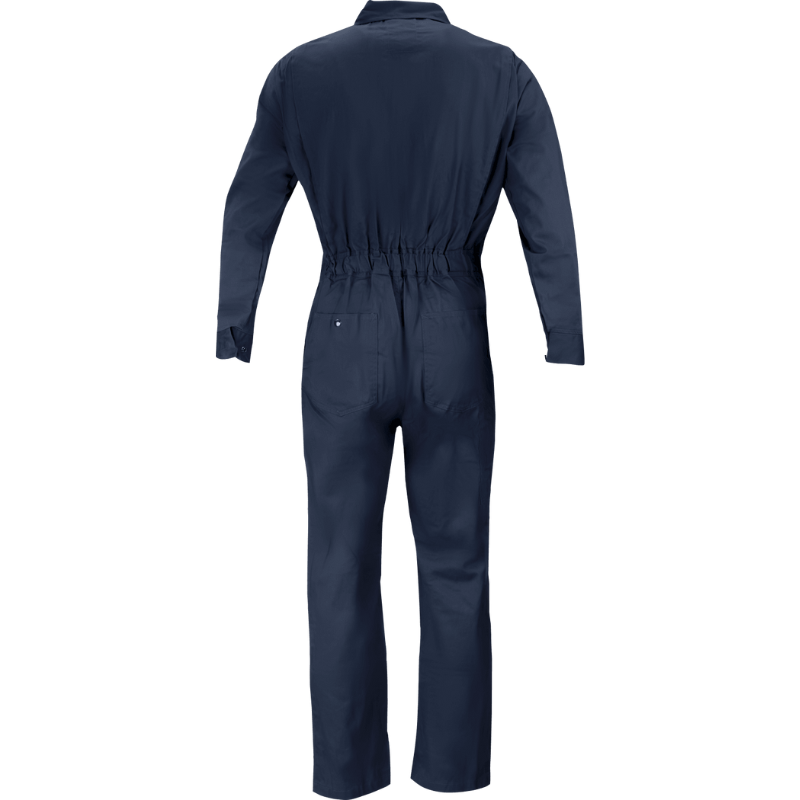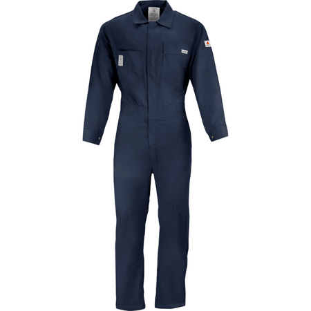 7 oz. Navy Blue Flame Retardant Coverall with Elastic Waist and Adjustable Sleeve Cuffs