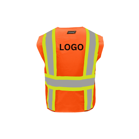 This high-visibility safety vest is designed for enhanced safety and functionality in demanding work environments. Made from 100% polyester mesh fabric with durable orange polyester binding, it ensures breathability and durability. The vest meets ANSI/ISEA 107-2015 Class 2 standards and features a two-tone reflective design with 2-inch silver reflective tape on 4-inch lime fabric. The reflective striping is arranged in a suspender pattern over the shoulders and includes 360° continuous reflective bands encircling the torso for all-around visibility.