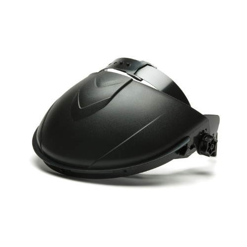The HGBR Headgear is constructed from durable nylon, ensuring longevity and consistent performance in demanding environments. Designed for versatility, it features universal slots that accommodate a wide variety of face shields and headgear. The ratchet-style adjustment provides a simple and secure fit, while the pivoting action allows the user to easily lift the face shield without removing the headgear. With a crown width of 6.25", this headgear offers universal sizing, making it suitable for various users. The included aluminum-bound polycarbonate face shield measures 8" x 15.5" with a thickness of .040", offering excellent durability and flexibility. It provides 99% protection against UVA, UVB, and UVC rays, and meets ANSI Z87+ safety standards for high impact resistance. The aluminum-bound edges allow the shield to be bent into the desired shape for maximum comfort and protection.
