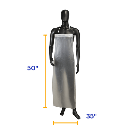 Protect yourself with confidence using this clear vinyl apron, crafted for durability and comfort in demanding work environments. Measuring 35 x 50 inches and constructed with 12 mil thick vinyl, this apron offers reliable splash protection without sacrificing flexibility. Its string design ensures a secure fit, making it ideal for extended wear across a range of industries. Whether you're dealing with spills, chemicals, or messes, this apron provides a barrier you can trust.