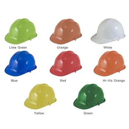 The 6 Point Suspension Hard Hat (Model 62610) in white offers robust protection and comfort for a variety of work environments. Designed with a reliable 6-point suspension system, it features a pin-lock size adjustment for a secure fit that accommodates various head sizes. Each case contains 12 hard hats, making it a practical choice for teams and organizations. This hard hat is also available in multiple colors, including yellow, blue, red, orange, green, hi-viz orange, and lime green, allowing for customization based on safety requirements or personal preference. Crafted from FDA-compliant materials, this hard hat ensures durability and safety during use.